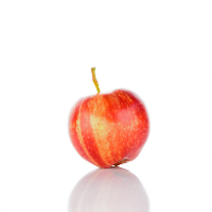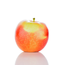 The Gala with full color and slight stripes has dark red coloration across the entire surface. The fruit has a medium, conical size. It gains its color relatively late, then reaches the ideal state of maturity and time of harvest when the color has appeared.